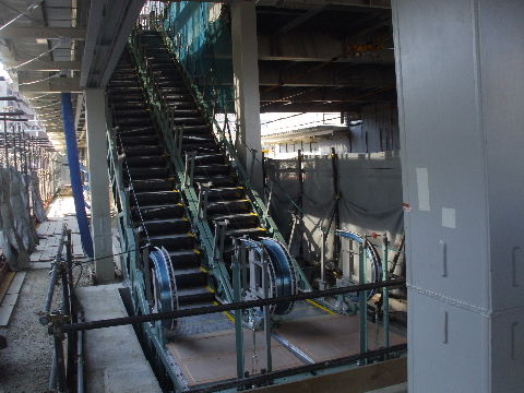 2014年5月6日。南口は組み立て中の鉄骨の中に階段が見 |