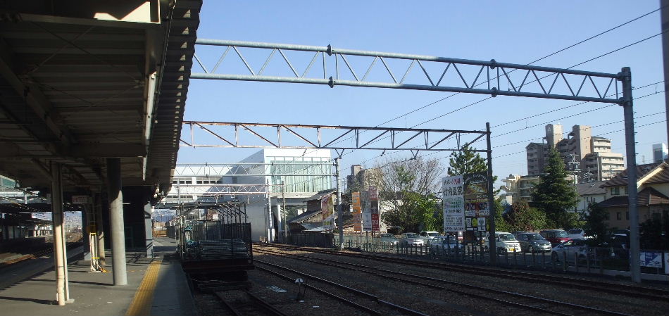 2016年10月30日。改札内から西を見る。用済みの仮跨線 |