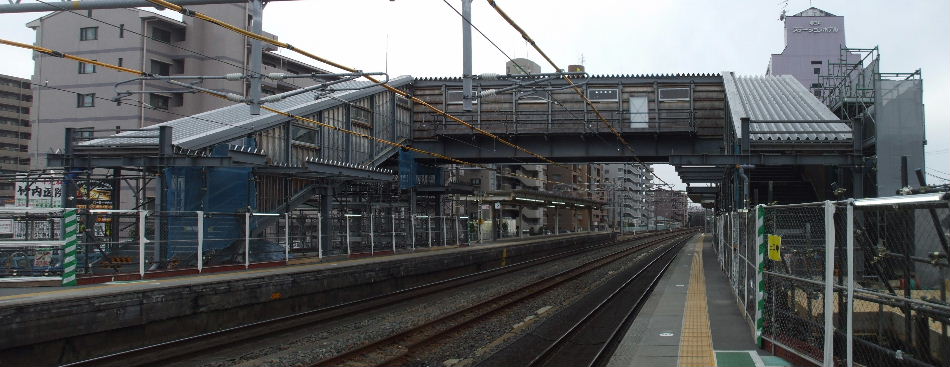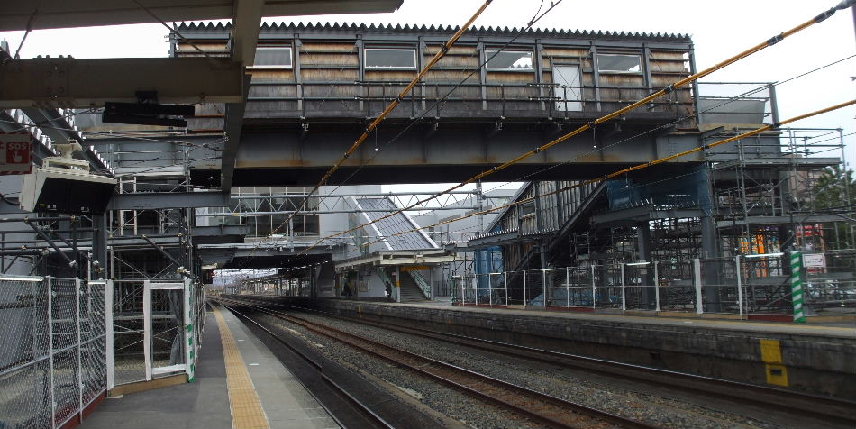 2017年03月05日。工事中、仮通路として使っていた橋上駅 |