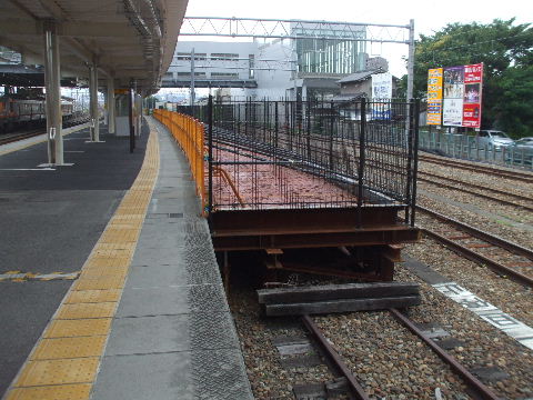 2013年5月5日。ホームの途切れた先に北口、待車場を潰して作った工事事務所につながる踏切が出 |