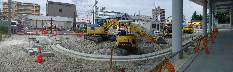 2017年09月23日。北口前広場。東側がタクシー乗り場になった。真ん中はバスの待機場とか整備中。 |