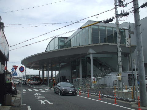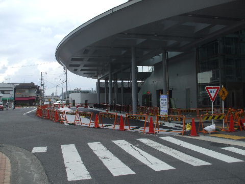 2018年08月04日。すべて出来た。真ん中のバスとタクシーの待機スペースは駅舎寄りの半分は柵で囲って使っていない。 |