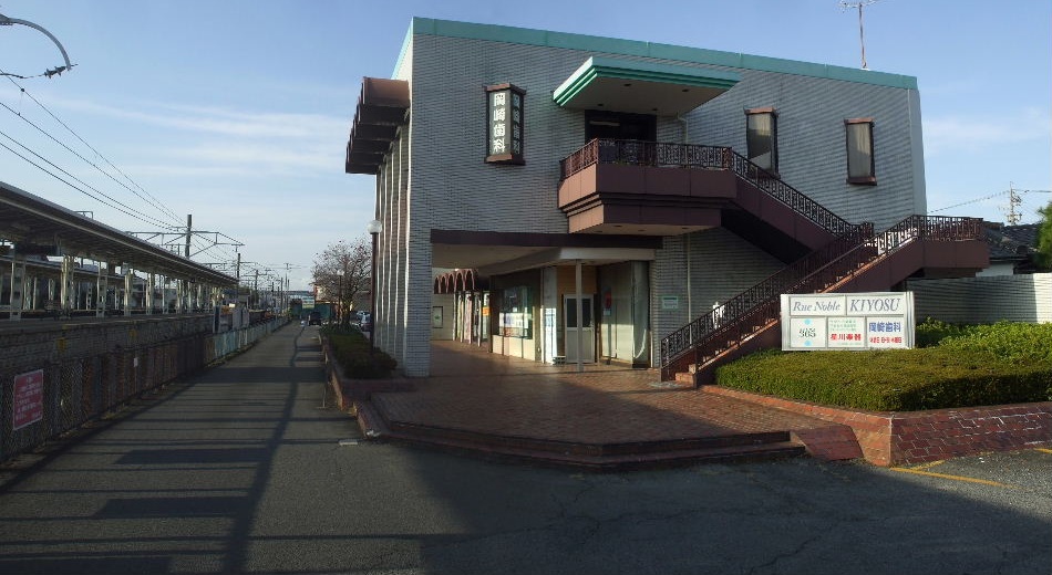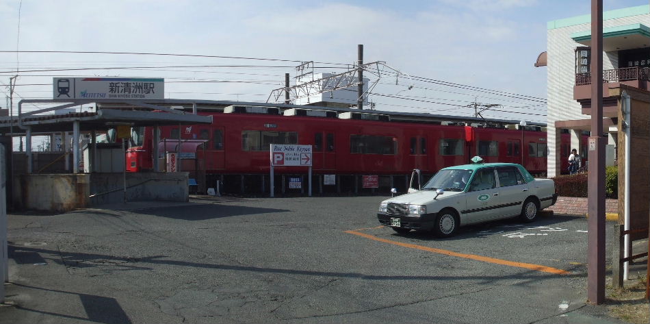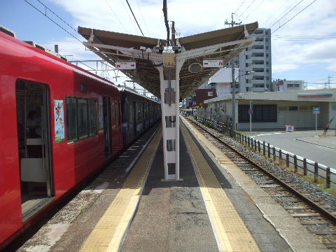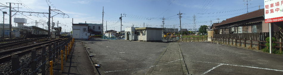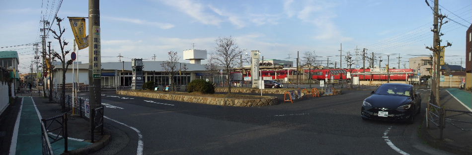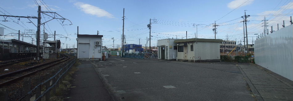 | 2017年11月17日。左奥の建物には昔スーパー(名鉄ストア→名鉄パレ)が入っていたが多分、北1㎞くらいのところに大型商業施設ができた後、撤退してそのあとはずっと空き家と思われる。広場があるのでこちらが表側の駅前っぽいが周りは住宅ばかりで日常的に利用するような物販店舗等は殆どない。 | |
