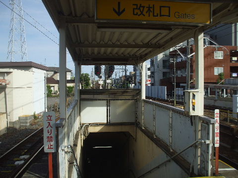 | 2019年06月08日。黄色い線の内側、外側の幅の割合が1:1:1。 | 2020年05月15日。名古屋方の端にあるホームと同じ幅の 階段を下りると改札口がある。 |
