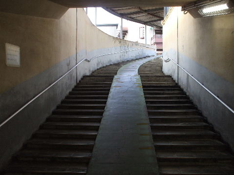 | 2017年11月17日。東西両側の出入口階段は自転車も 通れるスロープ付き。 |