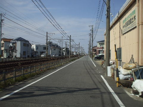 | 2021年02月28日。三筋北辺りまで来ると道路が線路際に並ぶ。 | 2021年02月28日。三筋北辺りから先は仮線用地確保が必要。 |