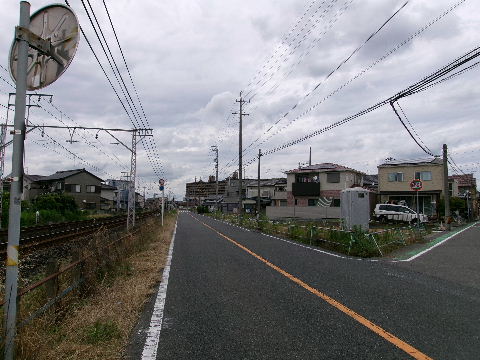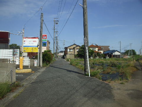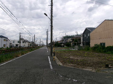 2020年05月15日。駅南の線路際から五条川方向を見る。 この道幅は変わらないようだ。 |