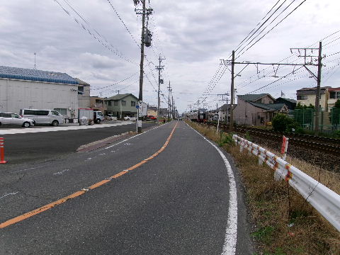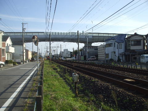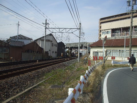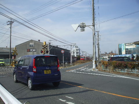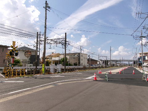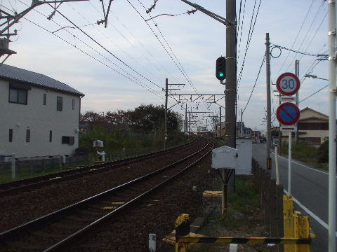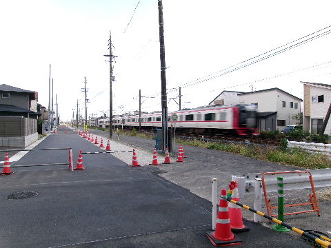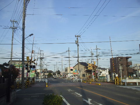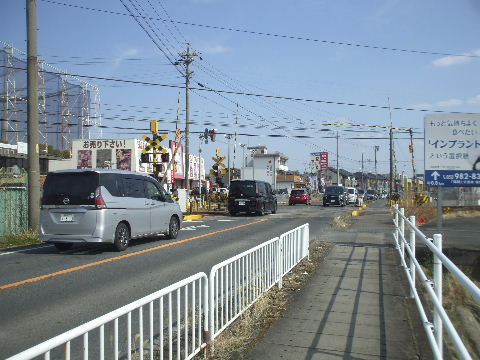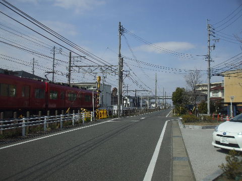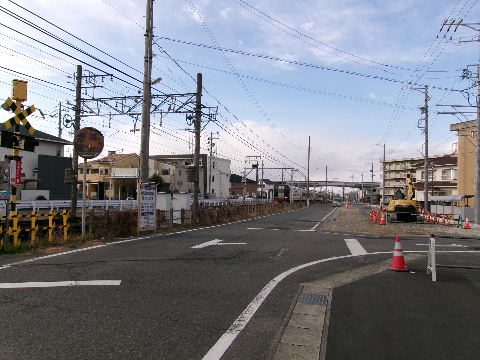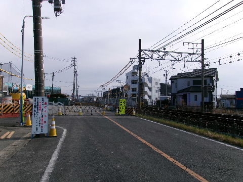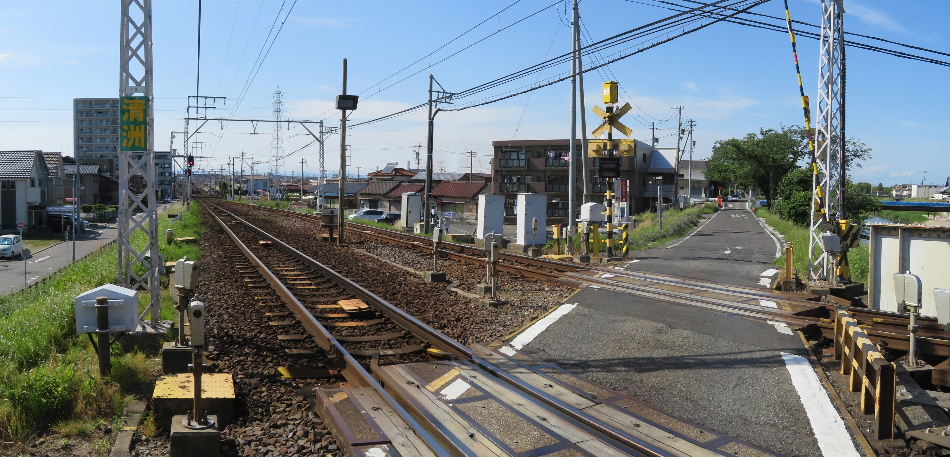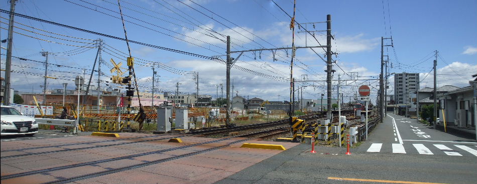 | 2021年02月28日。名二環と新幹線の中間くらいにある踏切。 新清洲駅の東を通っている県道がここで線路を渡る。東から。 |