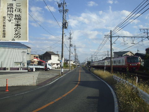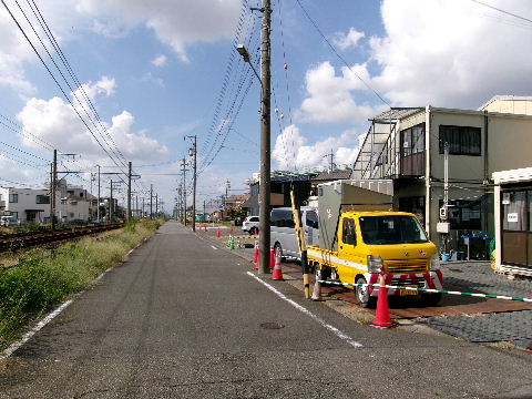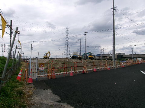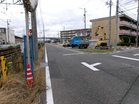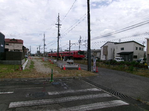 | 2024年06月22日。岐阜方の踏切から名二環までの 間で線路沿いの道を横へずらかして仮線用地を確保 する工事が始まっている。 |