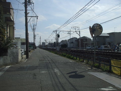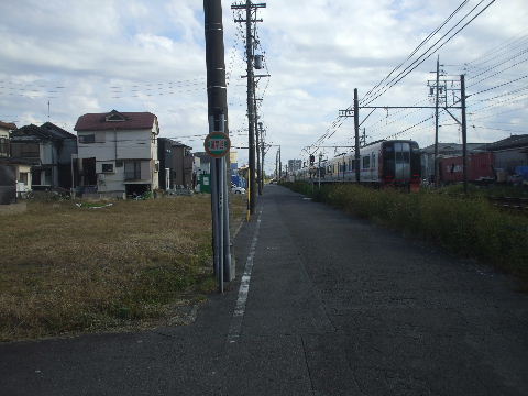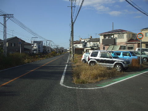 | 2022年10月30日。送電線鉄塔の手前の建物が無くなった跡に駅前へ入る新しい道路が出来たのでこの道は車が通れなくなった。 | |