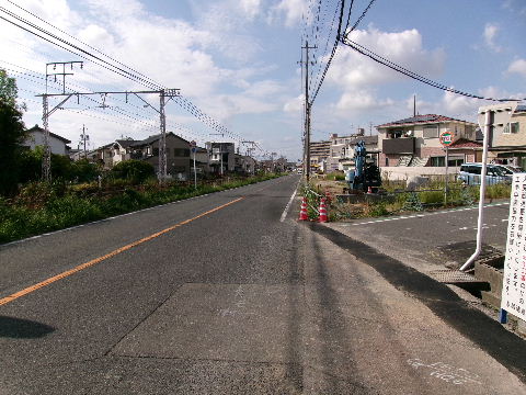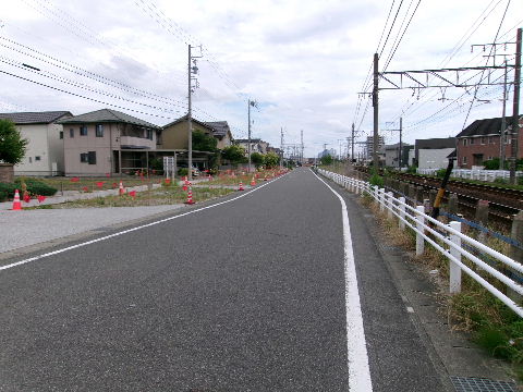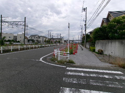 | 2024年06月22日。線路横に既に空き地があった所は 歩道を狭めて少し横へずらかす。 |