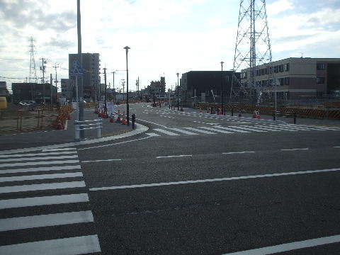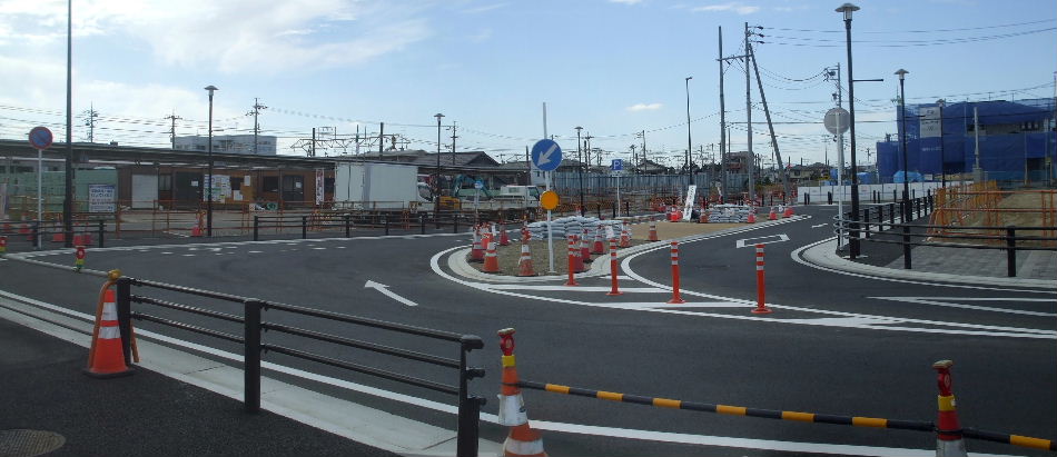 | 2022年10月30日。駅前広場できる。右の虎柵部が元の道。 | |