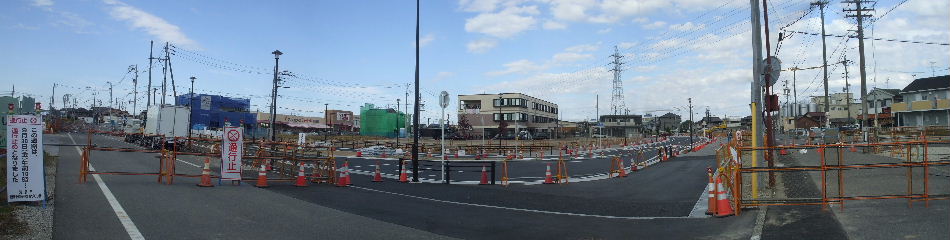 | 2017年11月17日。線路沿いにはまだ建物が残っているが区画が済んだところには新しいスーパーが出来ている。 | |