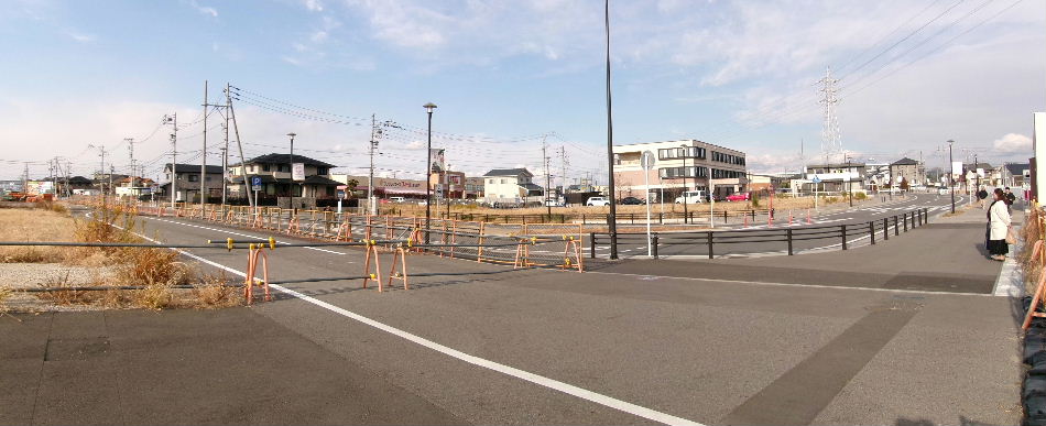 | 2020年05月15日。左奥が駅前、右が県道。 | |