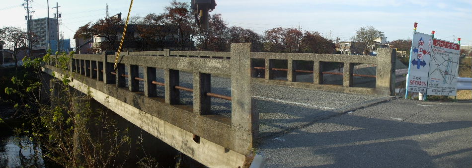 | 2017年11月17日。古い橋。一応中央線が書いてあるが狭い。架け替え準備中。 | |