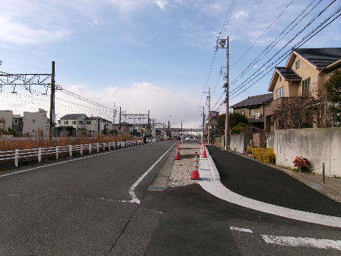 | 2021年02月28日。三筋ほど先まで何故か仮線用地のような スペースが既に確保されている。 |