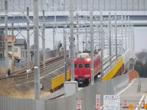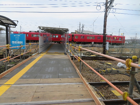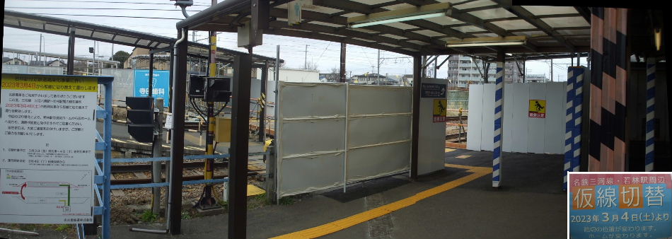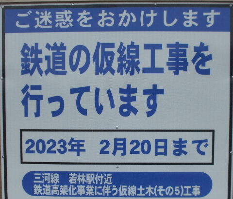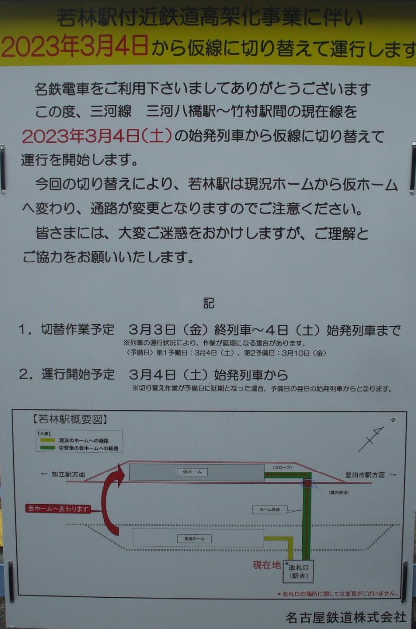 アレコレコレクション>名古屋近辺工事見物>名鉄若林駅高架化| 仮線工事看板 | 仮線切り替え看板 | 高架橋工事看板 |