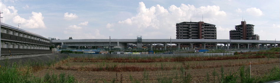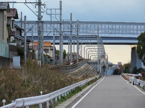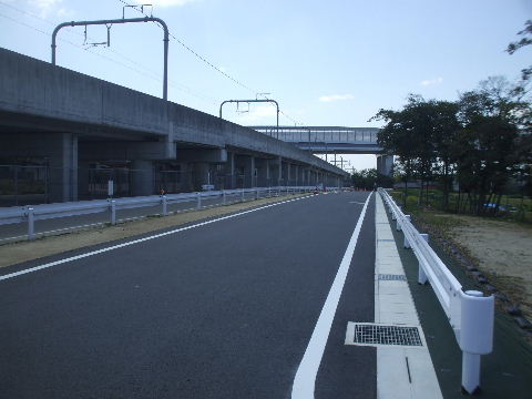 | 2023年03月05日。切り替え地点。 | <2025年10月12日。高架橋終わり地点。ここからは 地平に下りる土盛り区間。 |