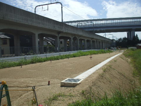 | 2021年12月12日。仮線用地の側溝作り中。 | 2022年07月24日。地平に下りるところまで側溝工事中。 |