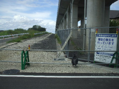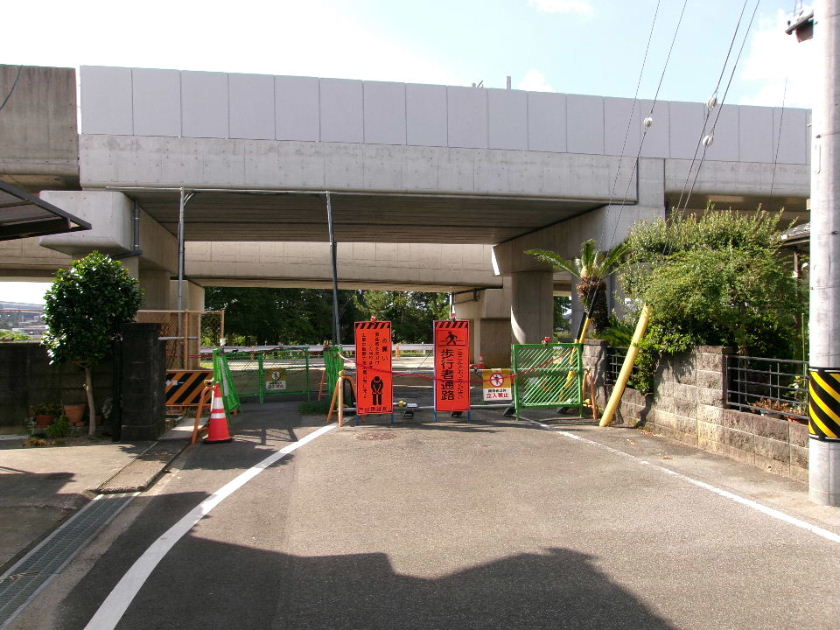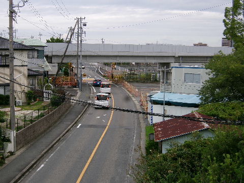 2020年09月19日。仮設道路は高速道路と交差するところのす でに高架になっている箇所から始まっている。 |