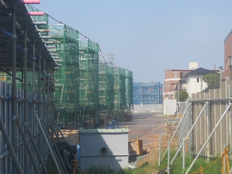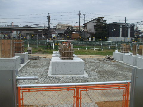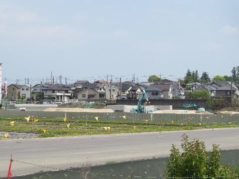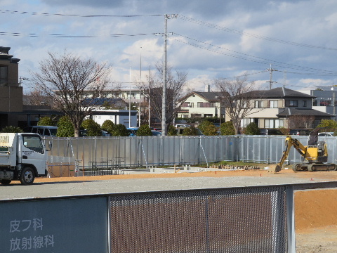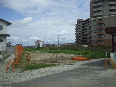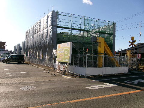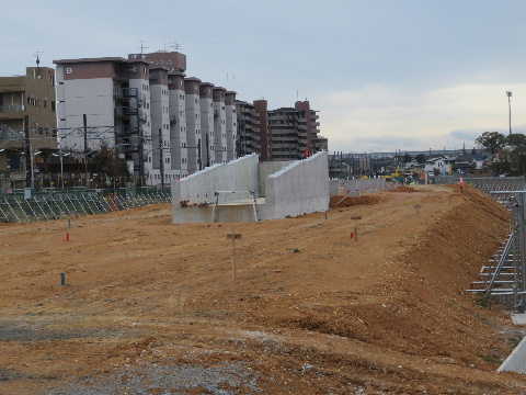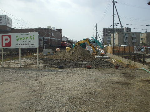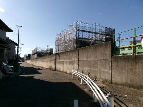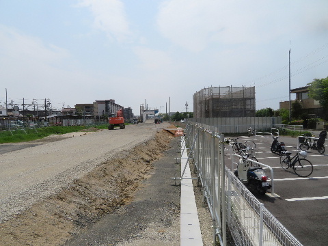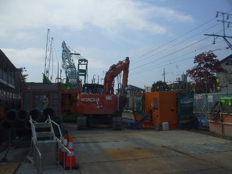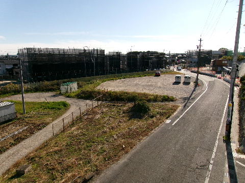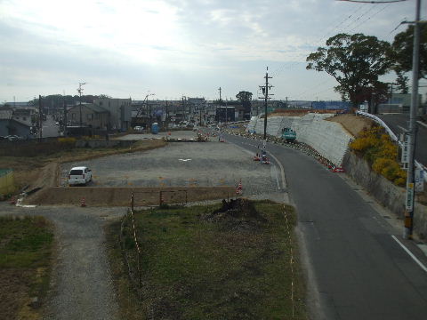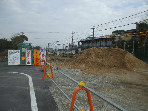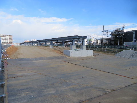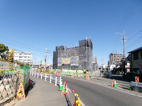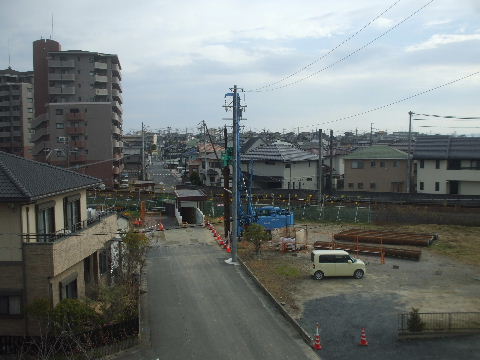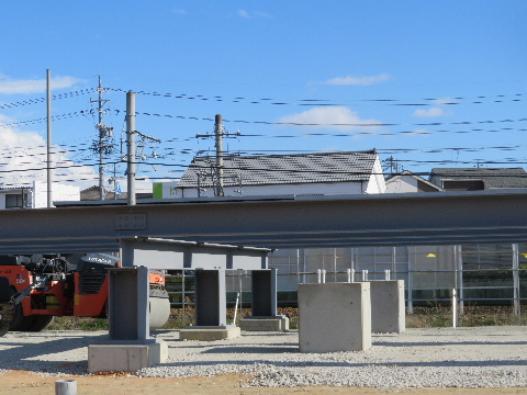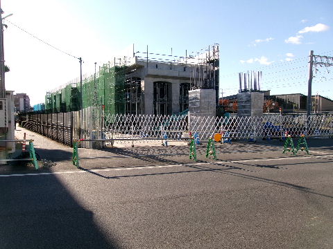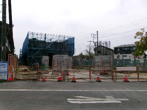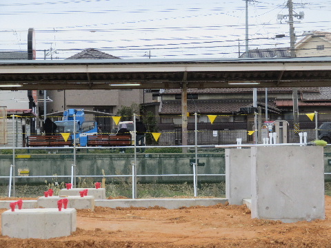 | 2023年11月05日。駅方向。重機で見えなくなる。 | 2024年01月14日。竹村方向。重機が入って基礎工事。 |