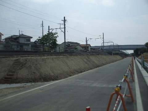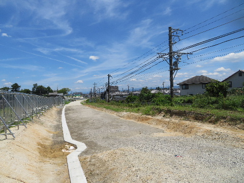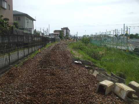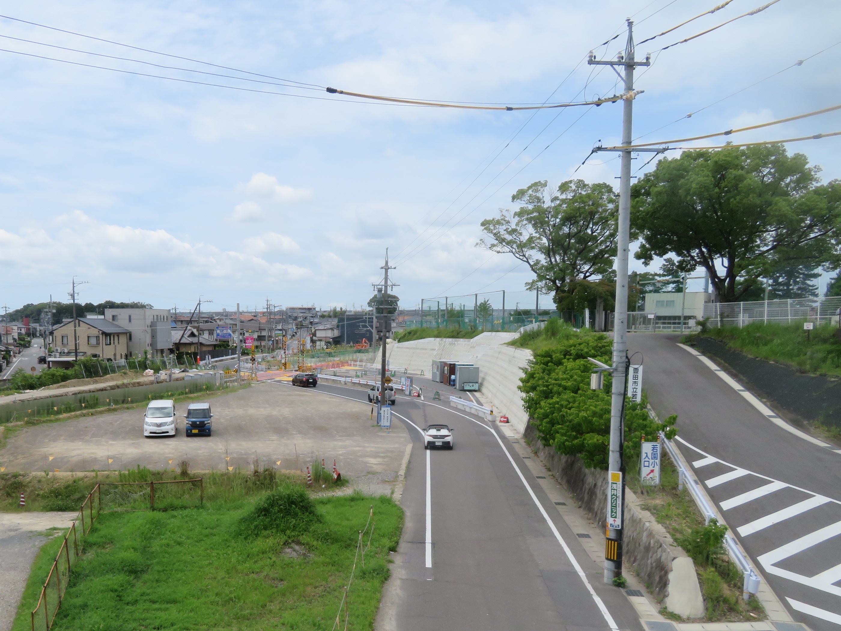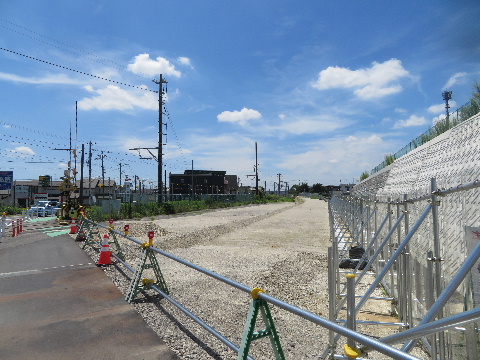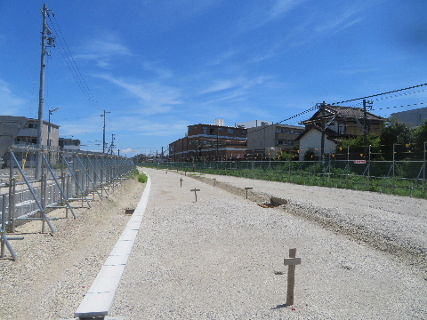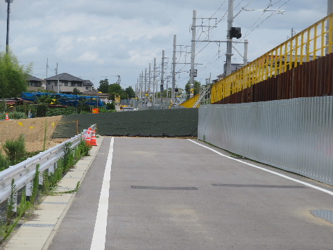 | 2022年06月05日。形になってきた。 | 2022年07月24日。踏切から若林方向。側溝もできた。 |