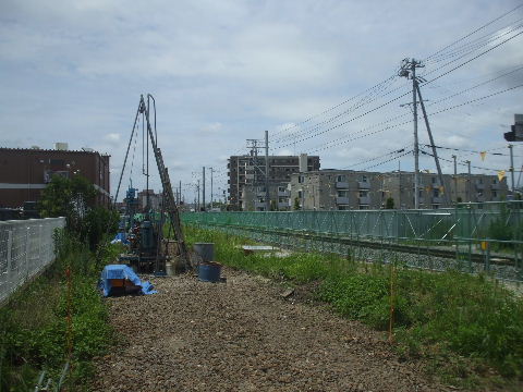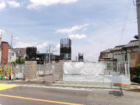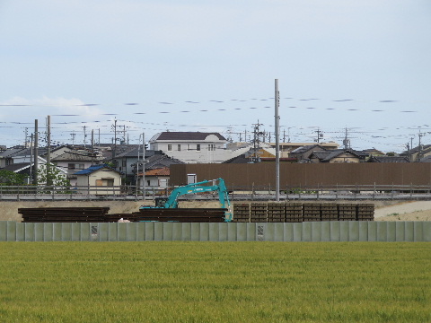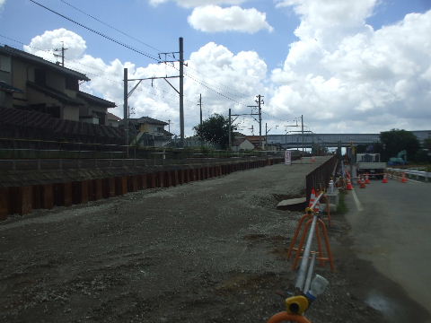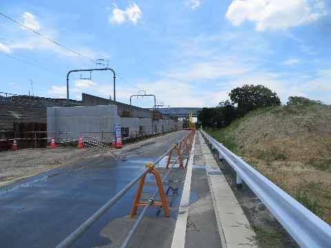 | 2024年07月21日。若林駅方向。橋脚出来てきた。 | 2024年07月21日。竹村駅方向。橋台、橋脚 工事中。 |