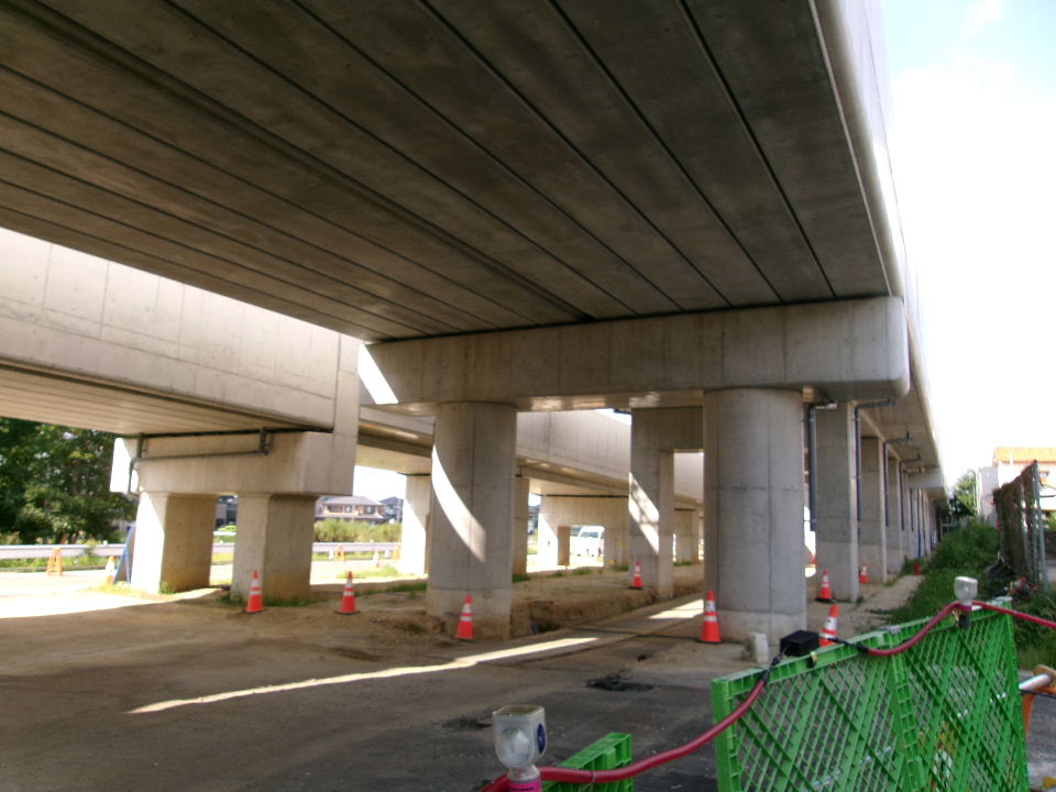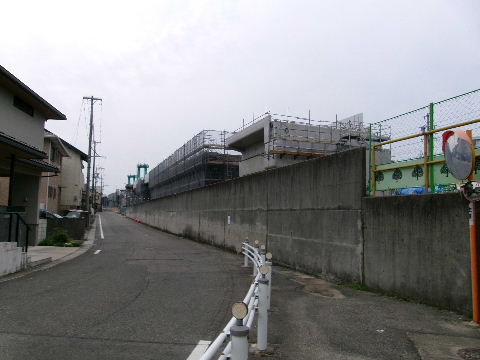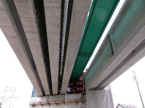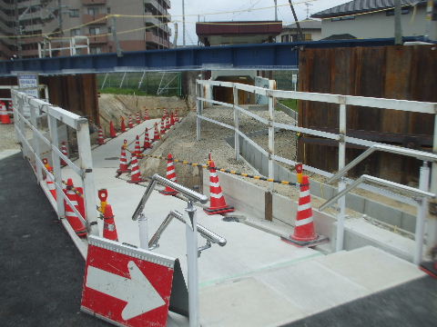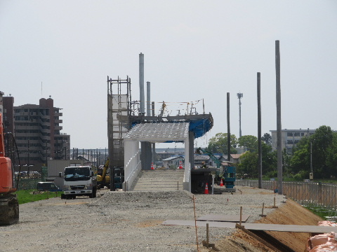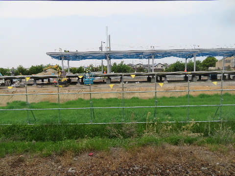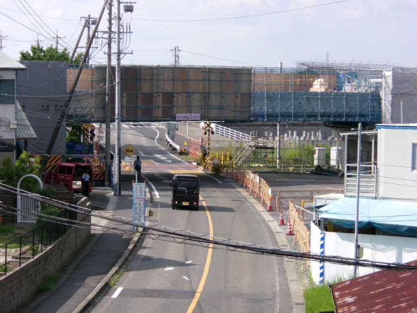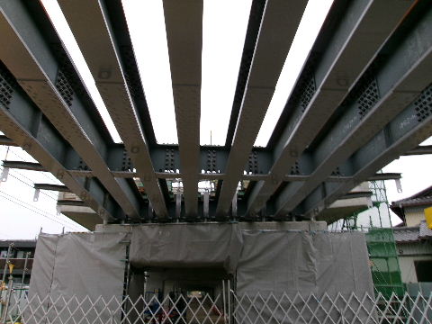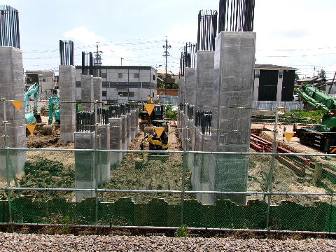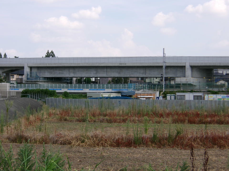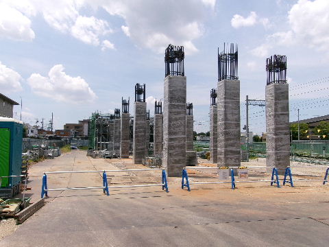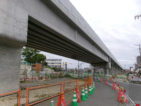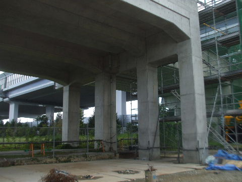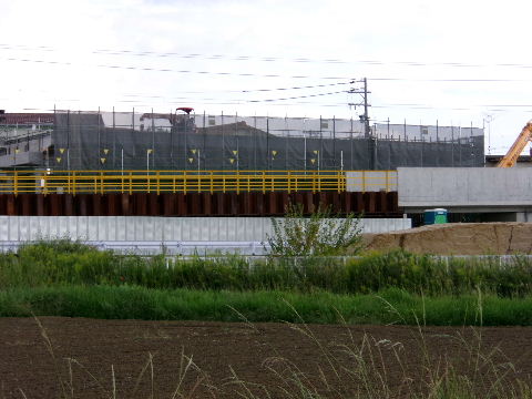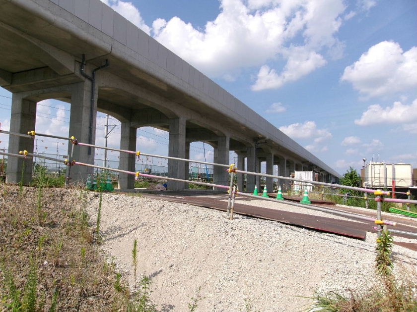 | 2025年08月17日。作業用の出入りに使っていた箇所でも工事が始まり、ほかの所も同様でこれでほぼ工事区間の高架橋がつながる。 | |