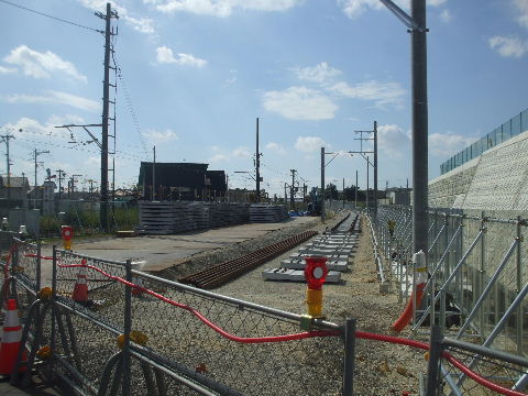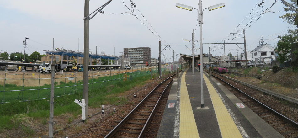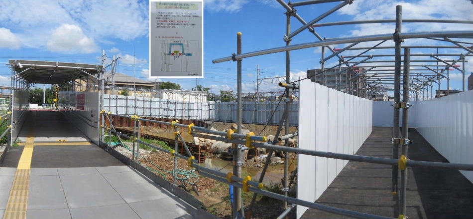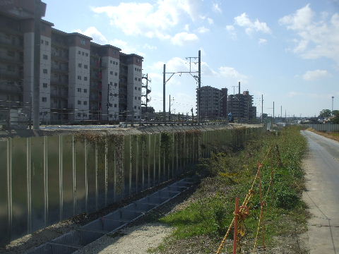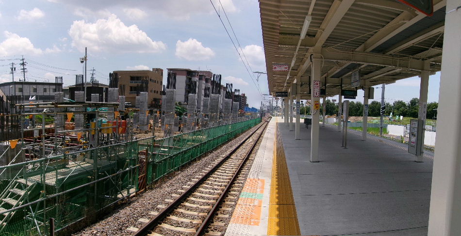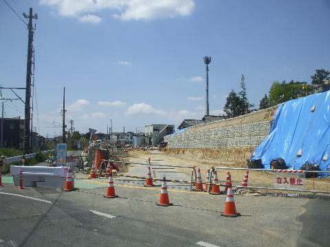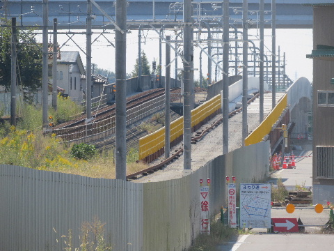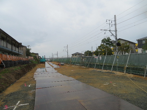 | 2021年10月10日。駅方向。塀が立ち、仮線用地造成中。 | 2021年10月10日。塀立つ。 |
