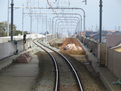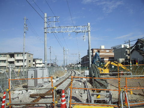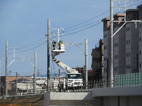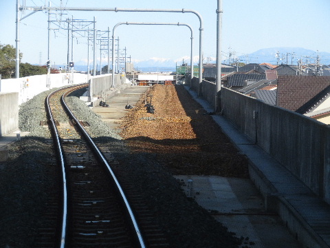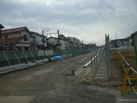 | 2024年01月14日。架線柱を立てる所が相対的に 下がった。 |
