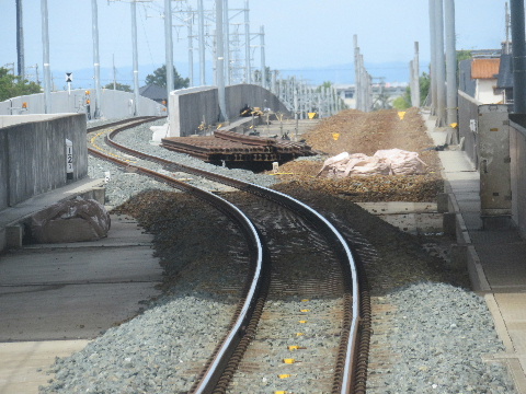 2025年08月17日。駅手前で途切れる下り副本線 高架橋。 |