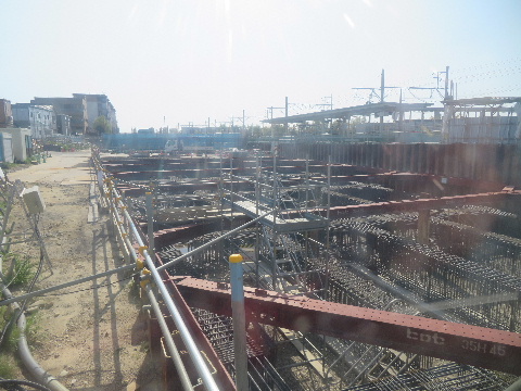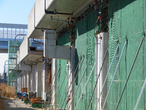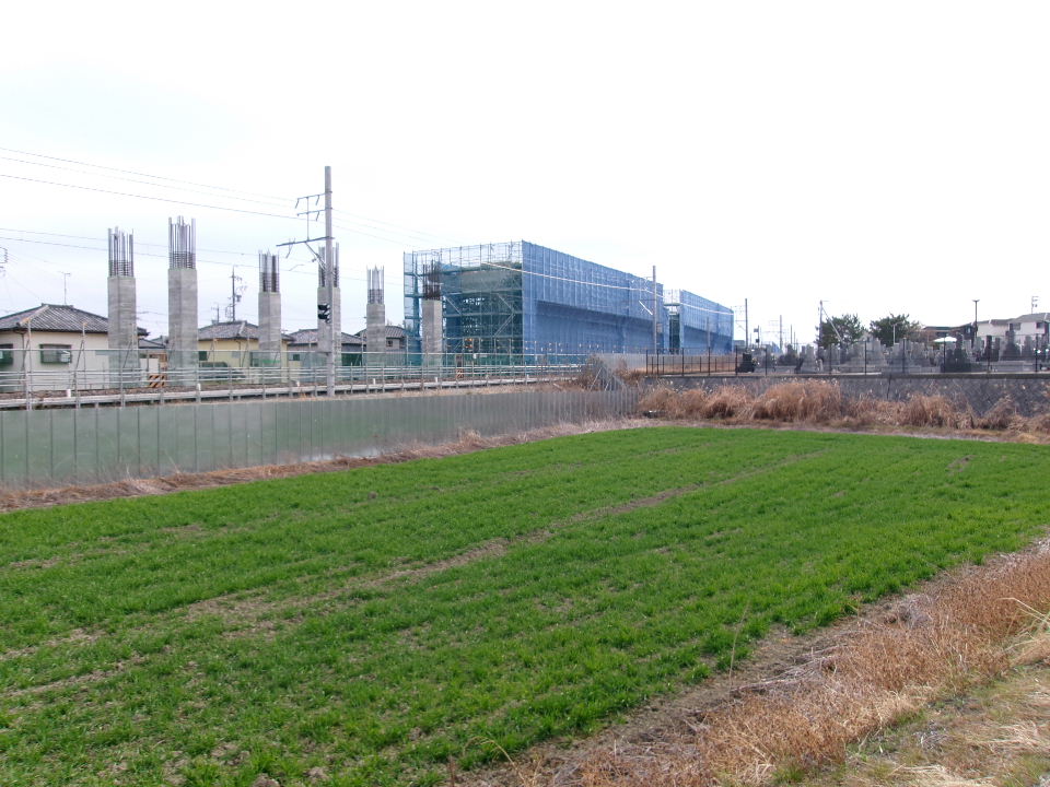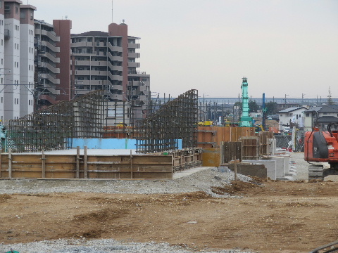 2025年02月16日。若林方向、手前の橋台部 以外で高架橋作り中。 |