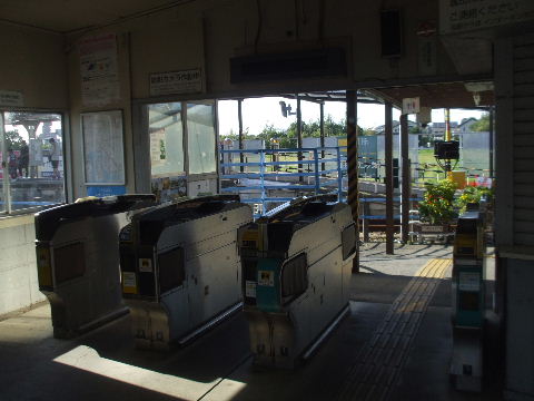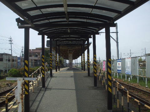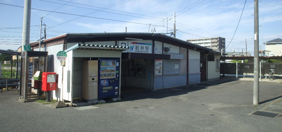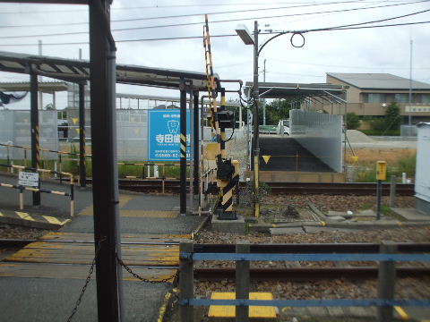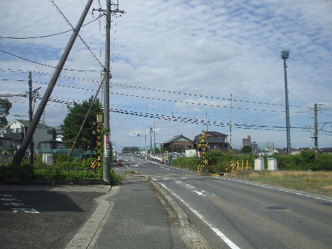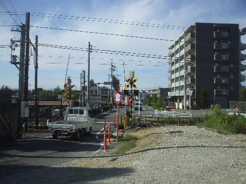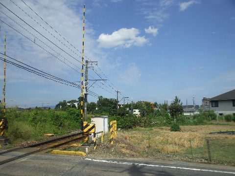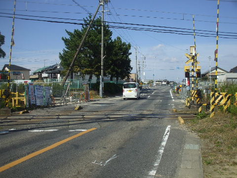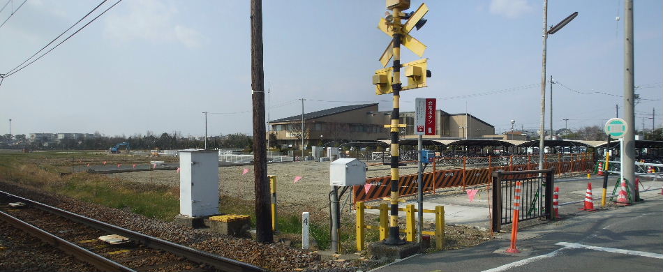 | 2016年12月23日。踏切から若林駅を見る。 | 2020年09月19日。踏切から竹村駅方向を見る。左側はかなり 以前からこの空地の状態になっている。 |