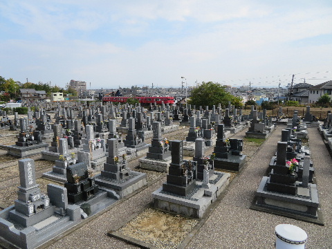 | 2024年10月06日。墓地の向こうに橋脚。 | 2024年11月24日。八橋方向。根元から コンクリート。 |