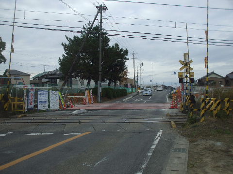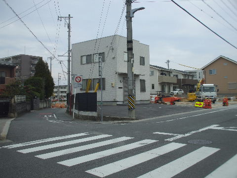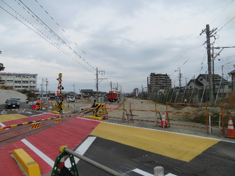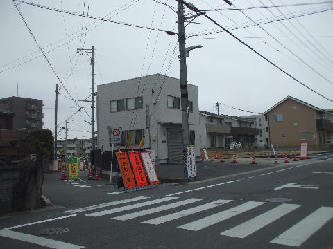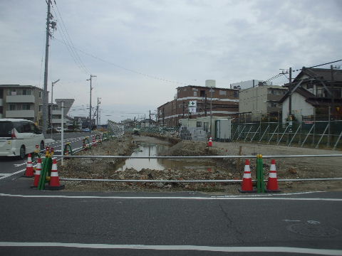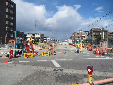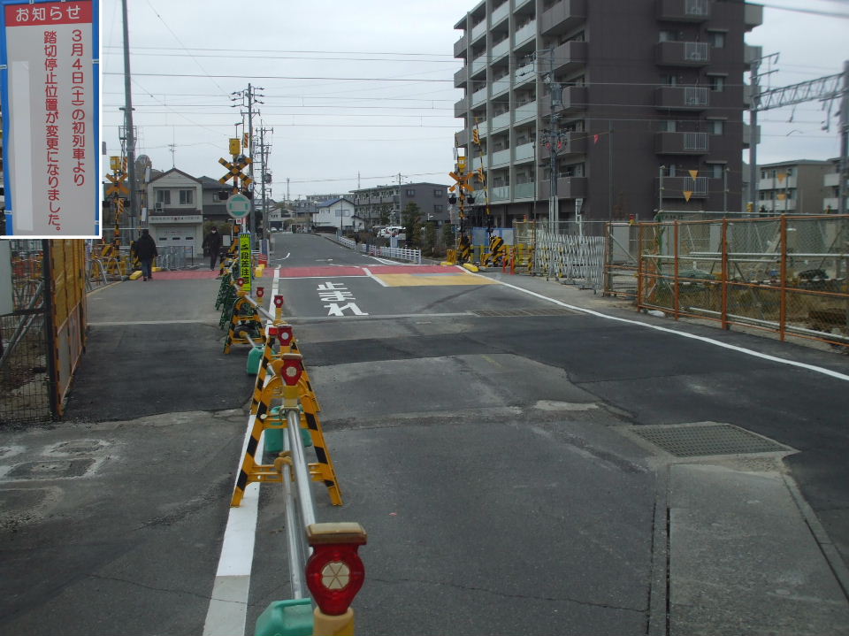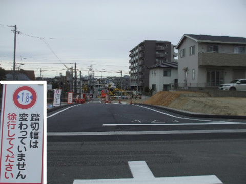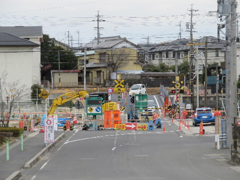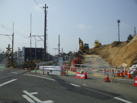 | 2022年01月30日。踏切へまっすぐ入る道路がとりあえず できてこちらの元の道は車通行止めになった。 |