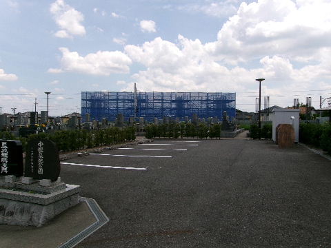 2024年07月21日。墓地の向こうで高架橋工事。 |