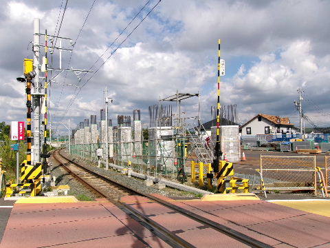 | 2022年10月23日。竹村方向。レールが準備されている。 | 2022年10月03日。踏切部。近々、手前に仮線踏切が出来る。 |