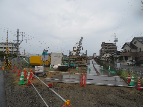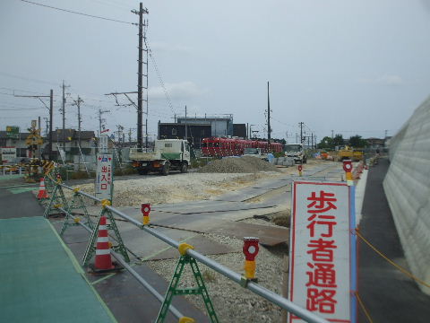 2024年07月21日。若林方向。踏切脇でも工事中。 |