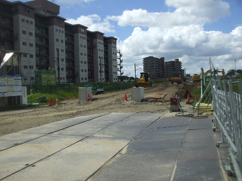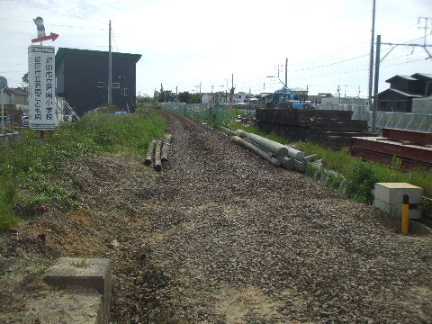 2021年08月22日。元道路だった仮線用地の舗装が 剥がされた。 |