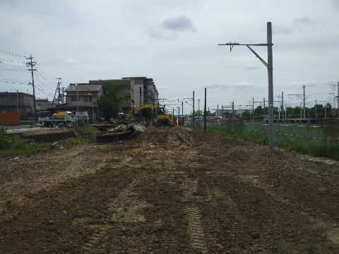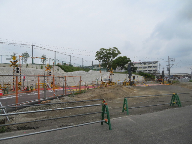 | 2022年04月23日。さらに工事中。 | 2022年06月05日。踏切から若林方向。整地進む。 |