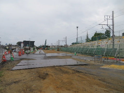 | 2020年09月19日。線路沿いの道を仮線用地に使うため道を 右へずらかす工事中。 |