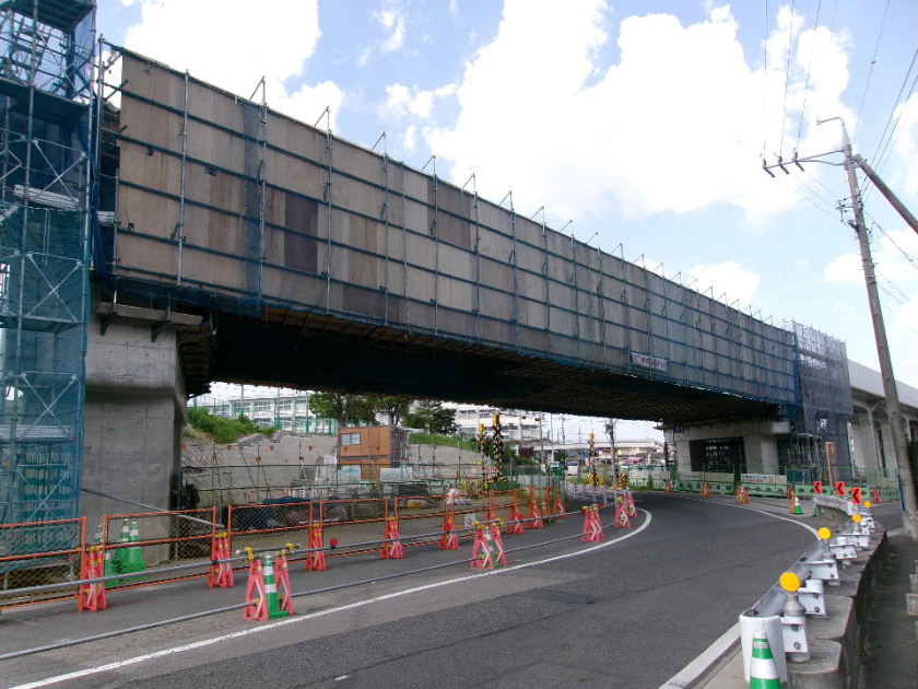| 2022年07月24日。 | 2022年09月04日。仮線高架橋が出来てきて現線と 同じのが並び複々線のよう。 |