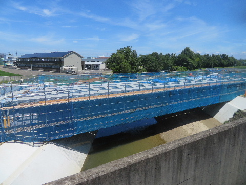2022年07月24日。橋脚は立て終わり桁部の工事中。 |