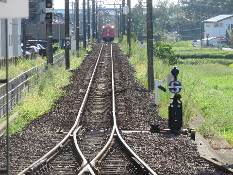 2020年09月19日。西、若林駅方向を見る。線路向こうには スーパーがある。 |