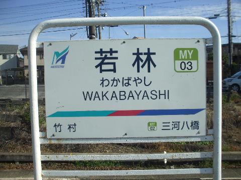 | 2020年11月08日。高架駅の三河八橋駅ホームから若林駅方向 を見る。複線高架橋に単線の線路。 |