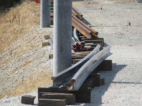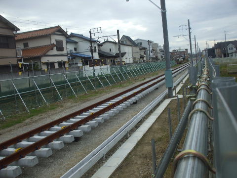 | 2022年10月23日。車内から切り替わり部を見る。 レールが準備されている。 |