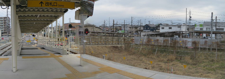 | 2021年02月07日。新しい駐輪場が出来たので線路寄りの半分撤去し仮線用地確保。 |