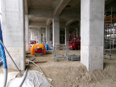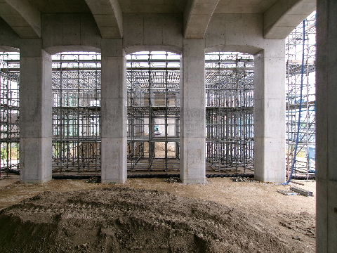 | 2025年06月08日。下から。まだ木枠が残っている。 | 2025年08月17日。すっかりコンクリートで 固められている。 |