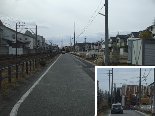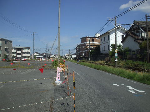 | 2020年09月19日。少し若林駅寄りから駅方向を見る。この 道路を右へずらかして仮線用地を確保することになるか。 |