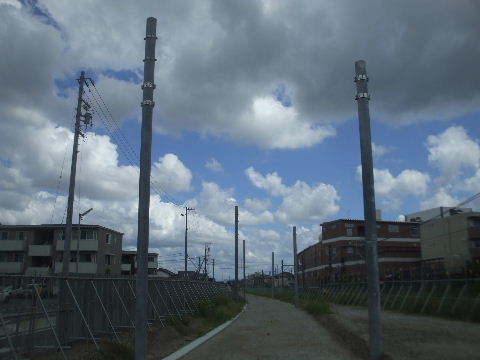 | 2022年06月05日。少し先から見る。左、現線と同じ 形のが並ぶ。 |